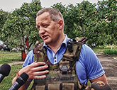 На вопрос журналистов о прочности бронежилета, ответил Евгений Корнецкий, главный эксперт научно-исследовательского экспертно-криминалистического центра (НИЭКЦ, НДЕКЦ) Управления МВД Украины в Черновицкой области: