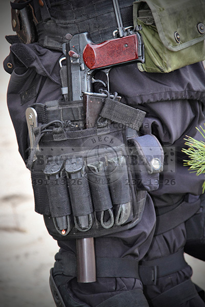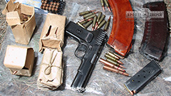 Стрельба велась из АК-74М калибра 5,45×39 мм. Магазин снаряжался патронами с пулями 7Н6М по обозначёнию ГРАУ: пуля со стальным нетермоупрочнённым сердечником.