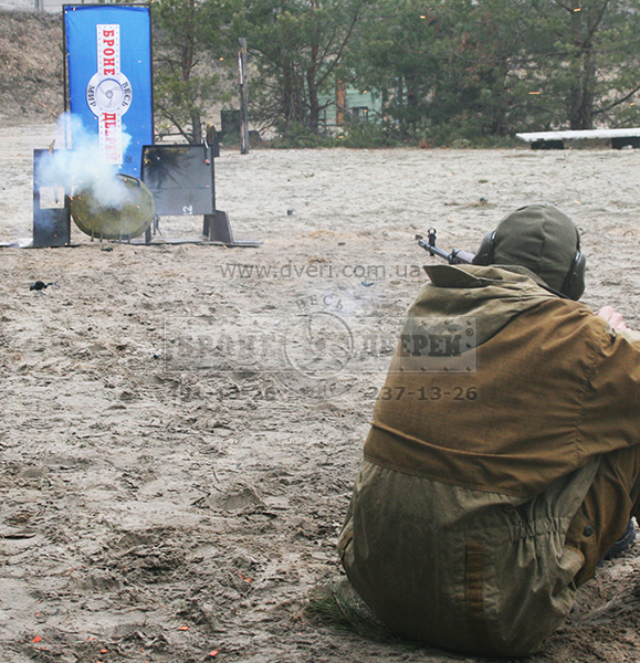 Ни одна пуля, выпущенная из АКМС не пробила ни один образец! Это был высоко прогнозируемый результат, но проверить всё же было необходимо. Далее, мы сразу повысили планку испытаний с 3-го класса пулестойкости до максимального – 6-го класса пулестойкости! Напомним, что согласно требованиями стандарта ДСТУ 4547:2006 на 6-ой класс пулейстойкости образец должен выдерживать попадания бронебойно-зажигательной винтовочной остроконечной пули Б-32 калибра 7,62 мм образца 1934 года со стальным закаленным (термоупрочнённым) сердечником. Для отстрела патронов (7,62×54 мм R) с такими пулями мы использовали винтовку СВД.