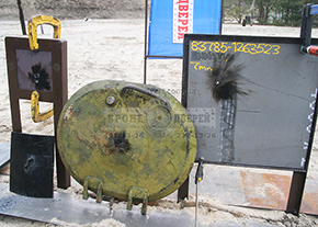 Тест бронированных сталей для полотна бронедвери летом 2012 года (обширное испытания пулестойкости компонентов бронежилетов)