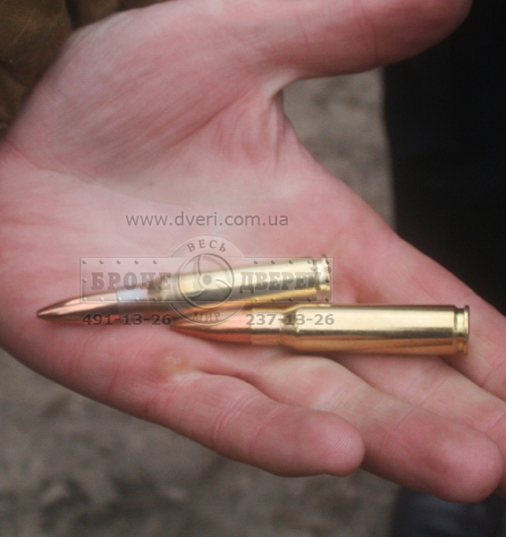 Начались испытания с тестирования разрушающего воздействия пуль патронов 7,62×39 мм. Индекс ГРАУ данных патронов – 57-Н-231 или, проще говоря, это патроны с обыкновенной пулей, которая содержит внутри стальной сердечник, изготовленный из нетермоупрочнённой стали. Это 3-ий класс пулестойкости согласно положениям государственного стандарта ДСТУ 4547:2006. Стрельба производилась из автомата системы Калашникова – АКМС.