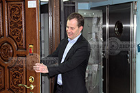 Представитель завода-производителя бронематериалов у нас в салоне, на нашей выставке входных дверей в квартиры и для банков.