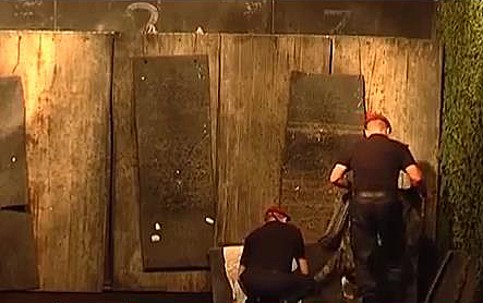 «Учебный тир для проведения стрельб со стрелкового оружия т. е. пистолетов - расстояние 25 метров... Защитный экран, резиновые слои и плюс там защитный пулеулавливатель состоящий из брёвен и песка.»