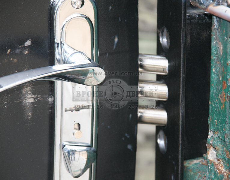 Также с целью повышения взломостойкости бронированной двери мы приняли решение увеличить расстояние между верхним и нижним замком в 2 раза. А именно: ручку нижнего замка в стандарте делать на высоте 95 см, а центр верхнего замка на высоте 140 см. Вместо 100 и 130 см соответственно. Данное нововведение позволит увеличить время отжима двери ломом за счет более равномерного распределения точек фиксации полотна.