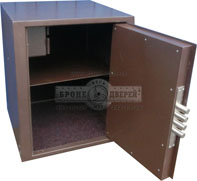 Недорогой металлический сейф из стали толщиной в 3 мм с внутренними петлями или наружными и не менее 3 класса по стандарту ENV 1627. Есть внутреннее отделение-касса и съемная полочка. Основной замок: Эльбор Сапфир Smart Trap. Цена сейфа - около 600 €. Стандартные размеры 50 см x 60 см x 50 см. Возможно индивидуальное изготовление с учётом любых пожеланий клиента.