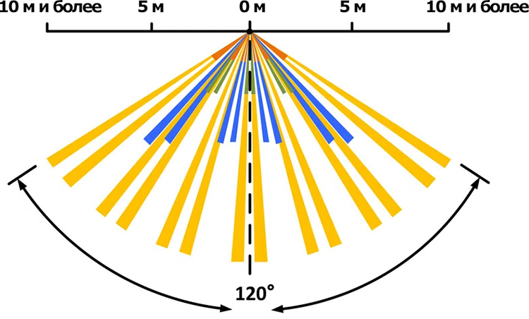 Событие будет создано за 0,3 милисекунды при наличии движения с отсечкой некрупных пород собак и т. п. За счёт довольно сложной диаграммы направленности с углом охвата 120° в узком пространстве датчик не имеет слепых зон, ошибка или ложное срабатывание исключены.