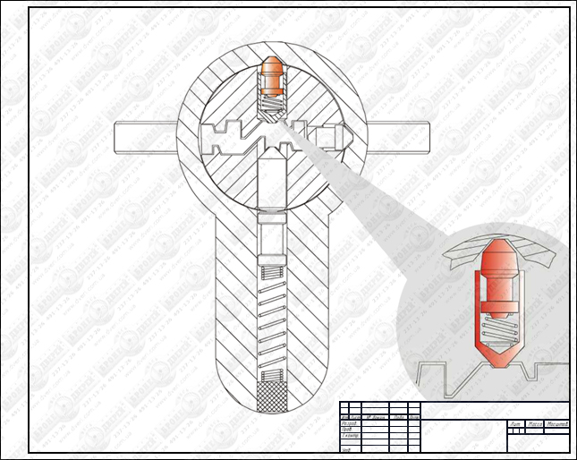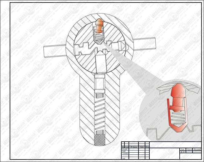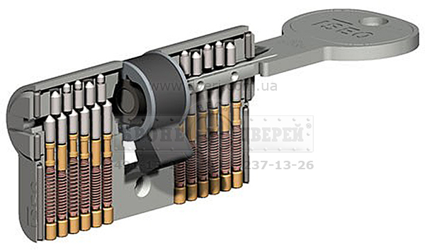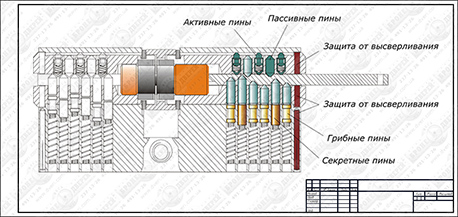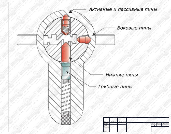 В случае, если вставленный в цилиндр ключ имеет неправильный профиль, пассивные пины не позволяют провернуть цилиндр и отпереть тем самым замок бронированной двери.